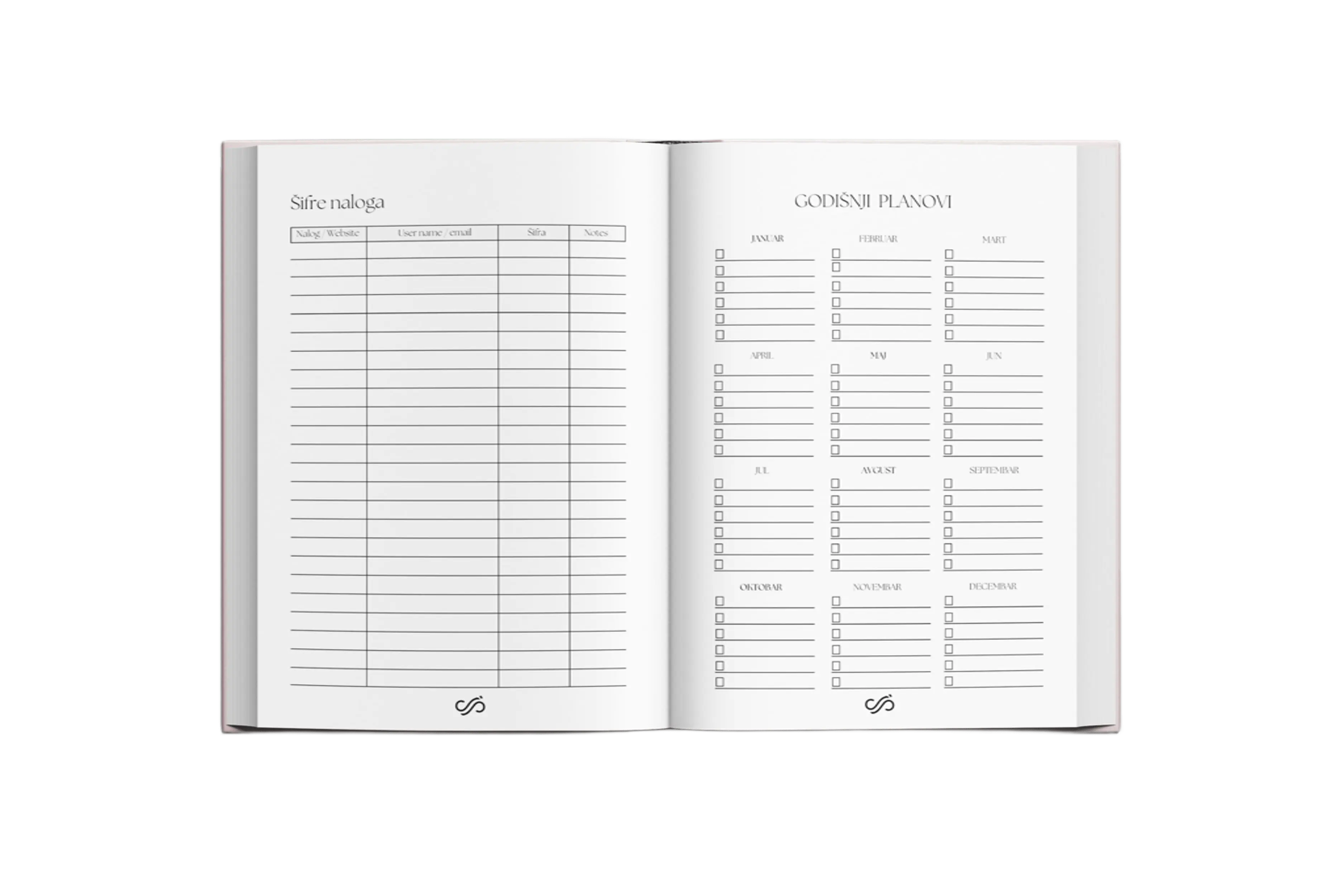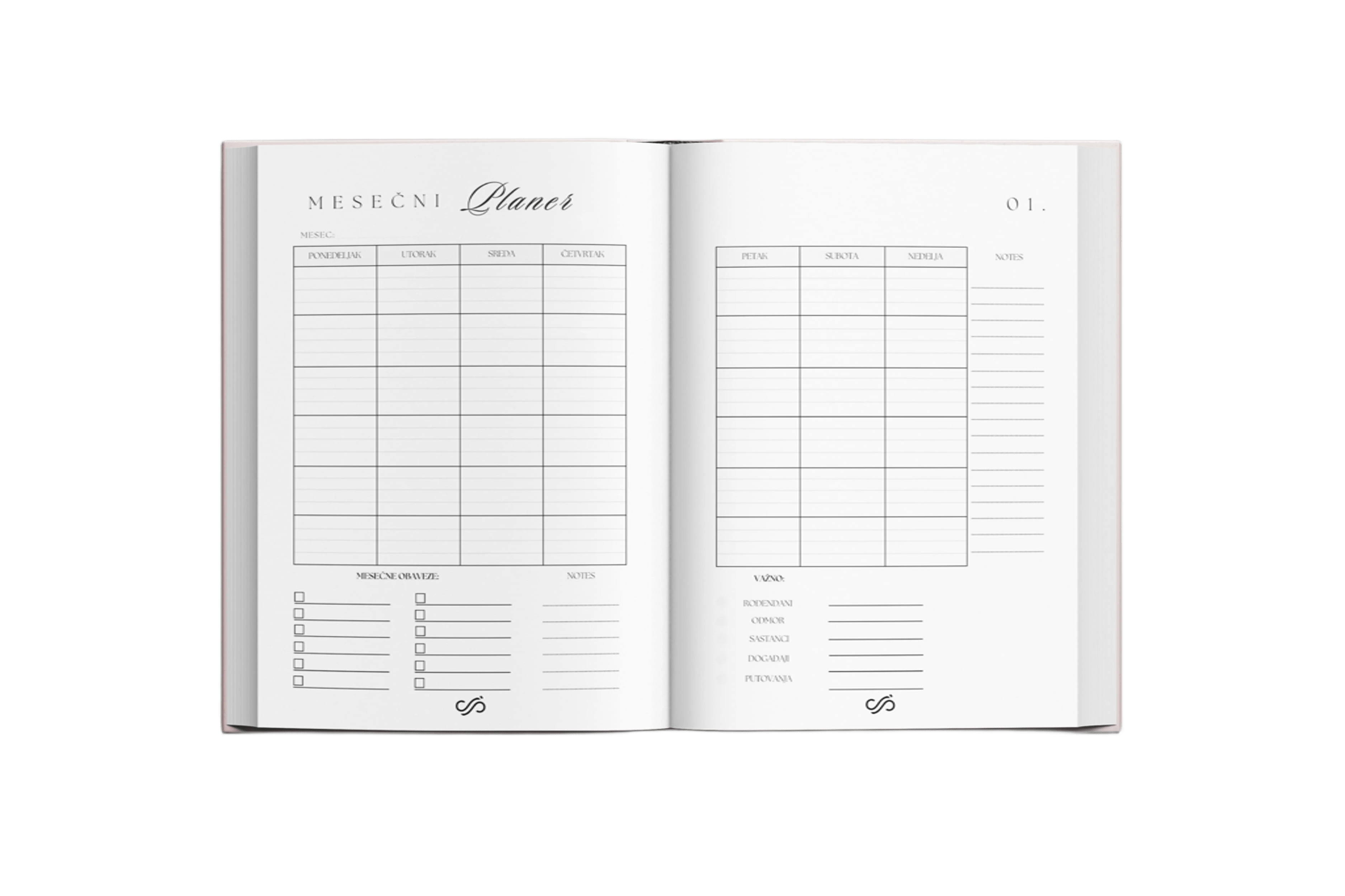 - Struktura našeg planera pažljivo je osmišljena tako da se lako prilagodi različitim stilovima života i svakodnevnim izazovima.
